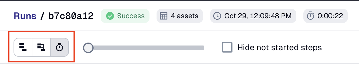 To change how the run is displayed, you can use the view buttons in the top left corner of the page: